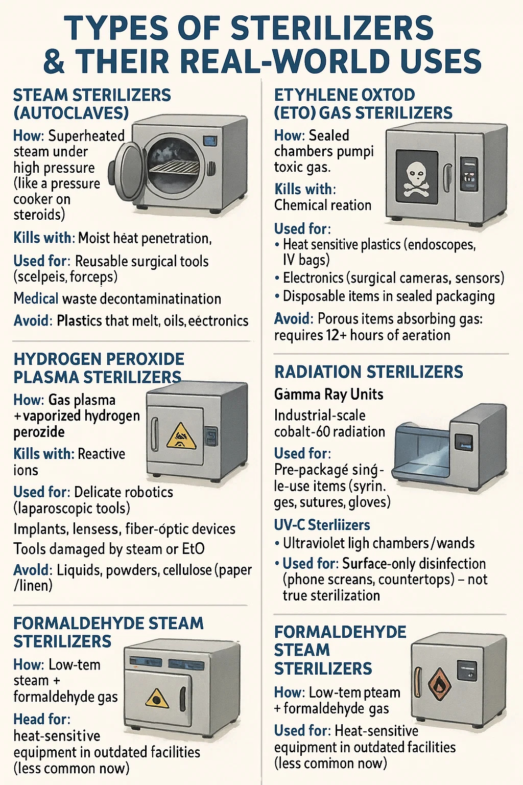 أنواع المعقمات واستخداماتها في العالم الحقيقي