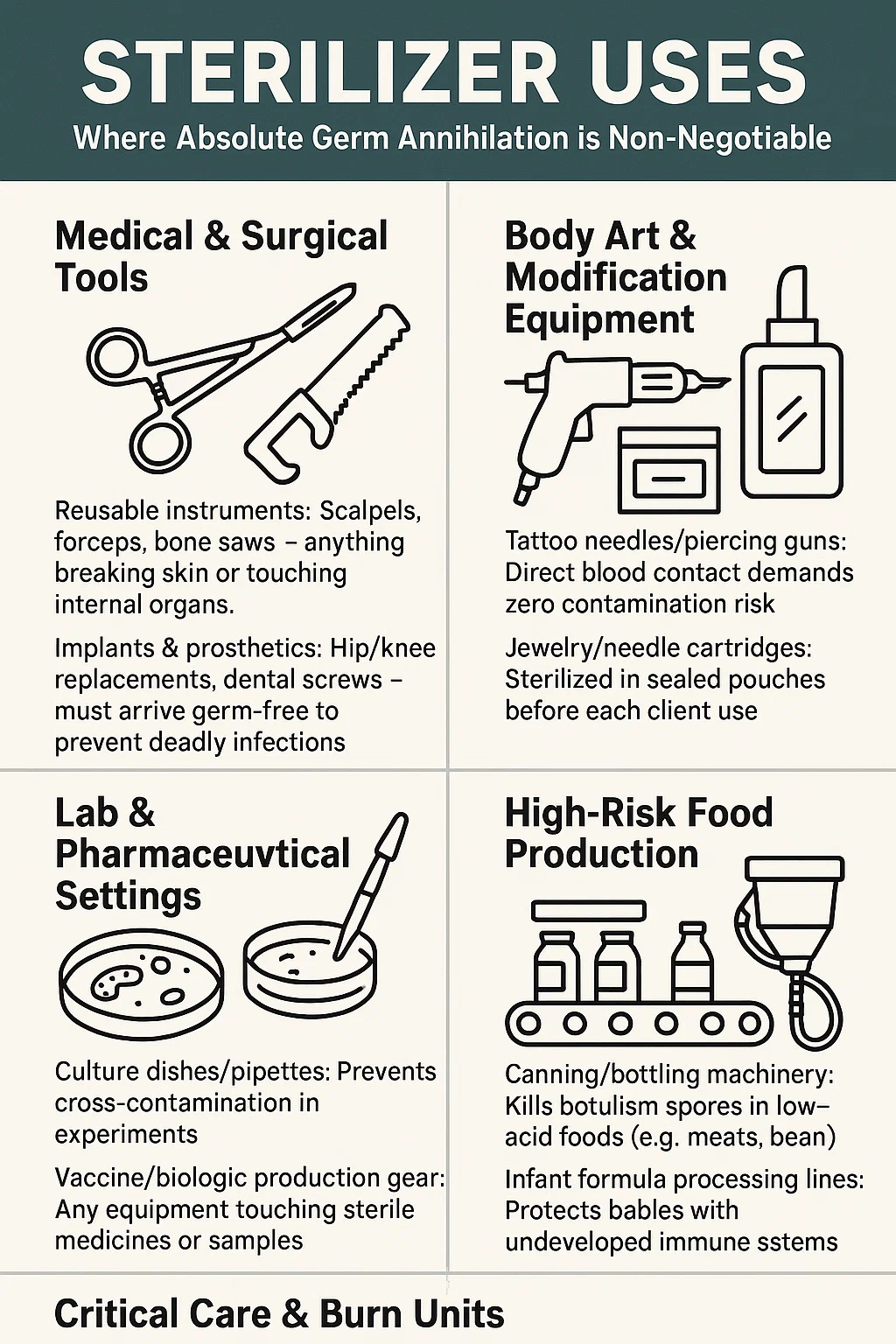 معقم الاستخدامات: حيث يكون القضاء على الجراثيم بشكل مطلق غير قابل للتفاوض