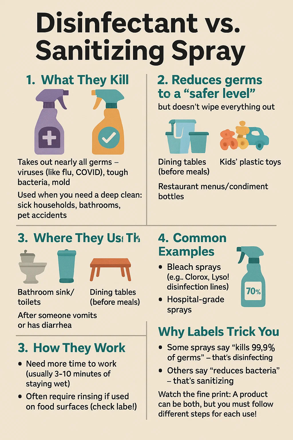 ▸ تقول بعض البخاخات "يقتل 99.9% من الجراثيم" - وهذا مطهر.